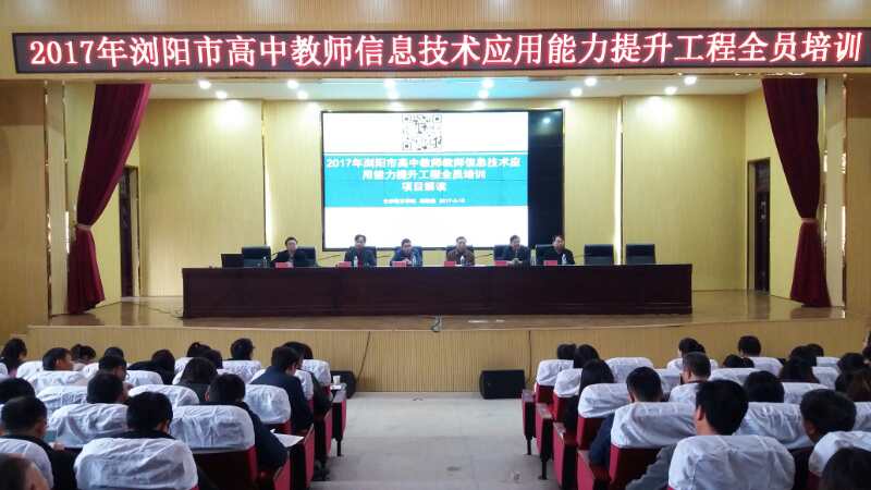 3月11日上午9:30,2017年浏阳市高中教师信息技术应用能力提升工程全员培训在浏阳市教师进修学校报告厅举行开班仪式,拉开本年度四县区(市)高中教师信息技术提升全员培训的帷幕。长沙市教育局、9323彩票集团、浏阳市教育局和浏阳市教师进修学校的领导出席开班仪式并作指导。