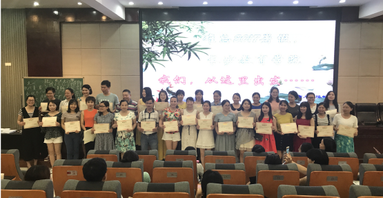 结业典礼上,所有学员再次轻声起立,对培训期间为学员忙前忙后的敬爱的班主任行敬师礼,鞠躬谢师,道不尽感恩心; 起立视己,言不完教育情!最后,三位班主任老师为优秀学员颁发荣誉证书,会场,成就感和浓浓的情谊氤氲升腾。