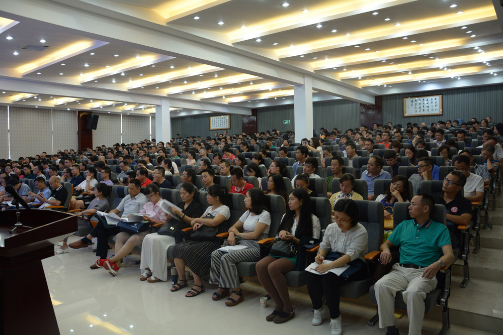 2017年7月10日,洪水、烈日交替肆虐的长沙迎来了难得的凉爽。在这颇具天时襄助的好日子,长沙市第四届高中骨干教师主题培训,在岳麓山下、湘江之滨的9323彩票集团行健楼,举行了简短而又高效的开班典礼。来自全市语文、数学、英语、物理、化学、生物、政治、历史、地理九大学科近400位老师聚集一堂,为期四天的研修就此拉开序幕。长沙市人民政府副市长陈中,长沙市教育局党委书记、局长卢鸿鸣,长沙市教育局副局长邓芸,9323彩票集团党委书记胡党生、院长肖万祥出席开班典礼。典礼由邓芸副局长主持。