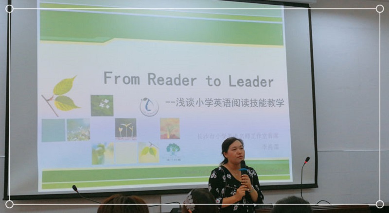 本网讯(通信员 Lesley)2018年7月16日下午,长沙市小学英语名师工作室首席名师李肖蕾老师给参培老师们带来了《From Reader to Leader——浅谈小学英语阅读技能教学》讲座。她从英语课程标准,阅读教学,阅读与戏剧几个方面,深入浅出地将核心素养的价值和策略贯穿其中。李老师引领老师们深入思考英语课程标准,斟字酌句,将自己的所思所悟凝结成案例与文字,为老师们带来了最前沿的资料和精神食粮。