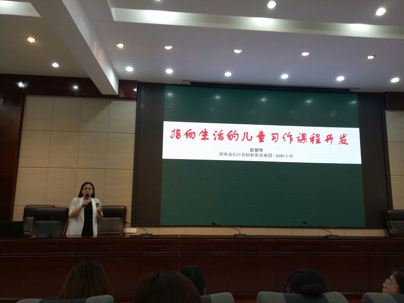 岳麓区学员颜津以《我的创意写作课》为主题,讲述了她的教学方法,读写结合始终是指导孩子提高写作能力的有效途径。