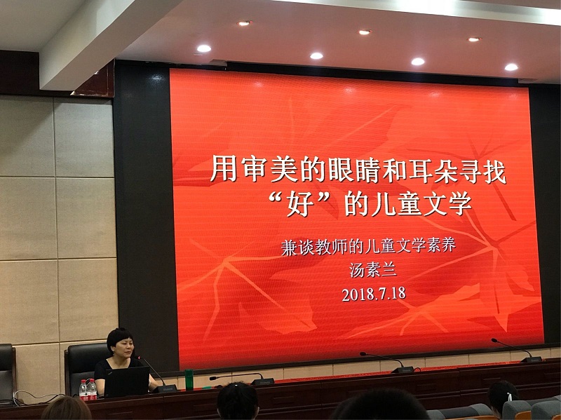 本次习作主题培训的最后一天,我们迎来了一位重量级的主讲老师,她就是著名儿童作家汤素兰老师。汤老师带来的讲座是《用审美的眼睛和耳朵寻找"好"的儿童文学》兼谈教师的儿童文学素养。汤老师谈到,作为一名教师,要有一颗感受文字美的心,拥有鉴赏文学美的能力,创造文学美的能力,要如何做到以上3点呢,汤老师以一系列的国内外优秀绘本为例,带领老师徜徉在童话故事的海洋之中,贴近童心,感悟到了什么是幻想之美、纯真之美、朴素之美、愉悦之美。