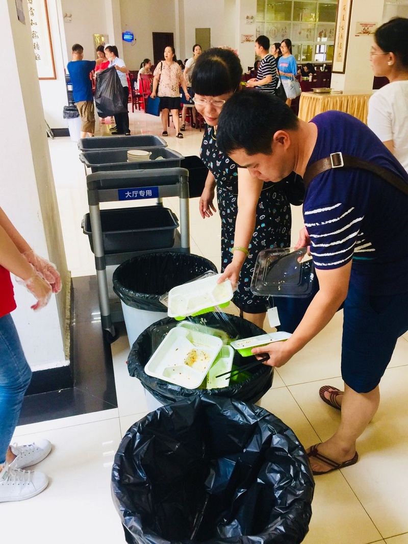 而我们的绿色研训主要就落实在大家的一些培训的日常点滴中,比如就餐时不浪费饭菜,喝水时尽量自带水杯等。
