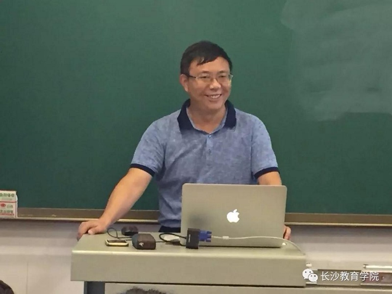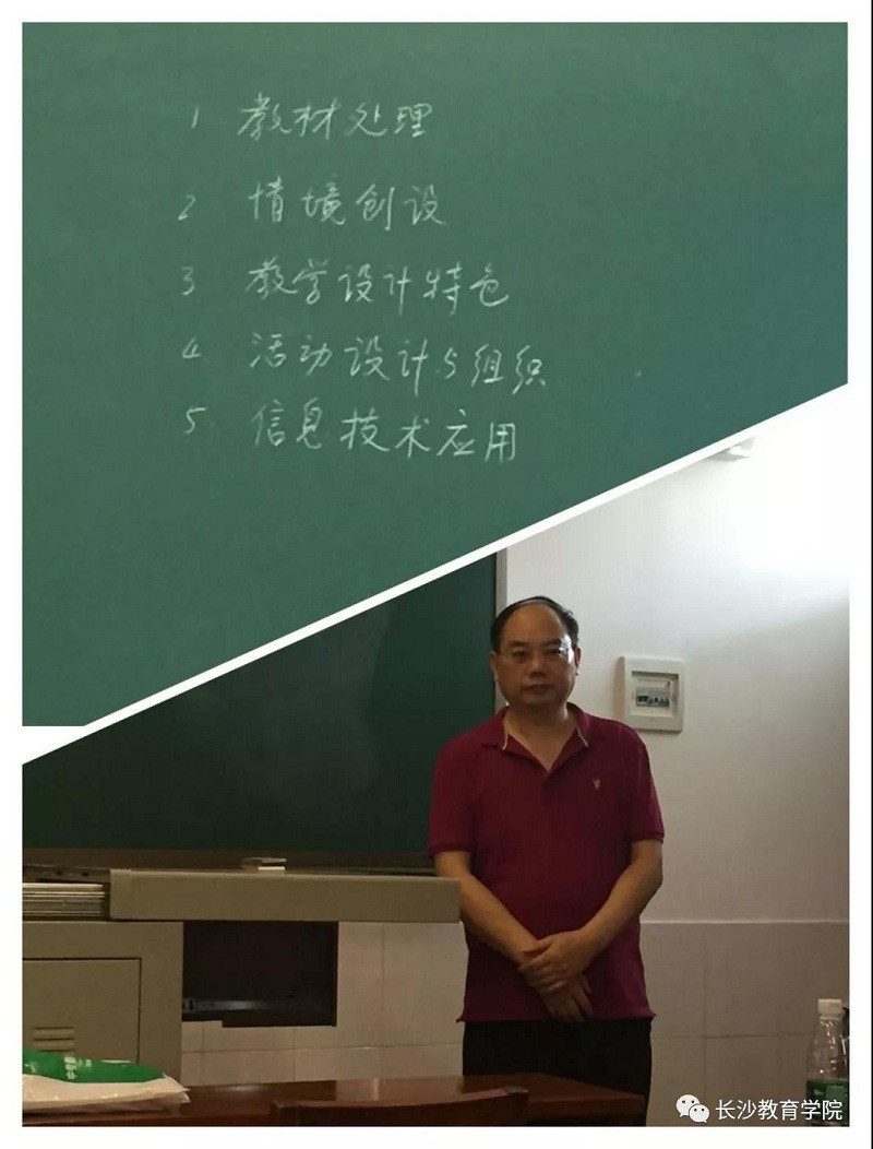 接下来,宁老师为我们请出了化学特级教师姚建民老师,他可是长沙市大名鼎鼎的姚特-----严谨、博学、智慧、勤勉......总之集万千优点与一身!他为我们做了题为《为“学”而设计》的专题讲座,不说他的知识内容的渊博、实用、专业,单说他那兢兢业业的工作态度和精神(整整三个小时一直坚持站在讲台上讲课,汗流浃背),就足以让我们终身受用无穷!我们能有幸听他的讲座,真的万分感恩!
