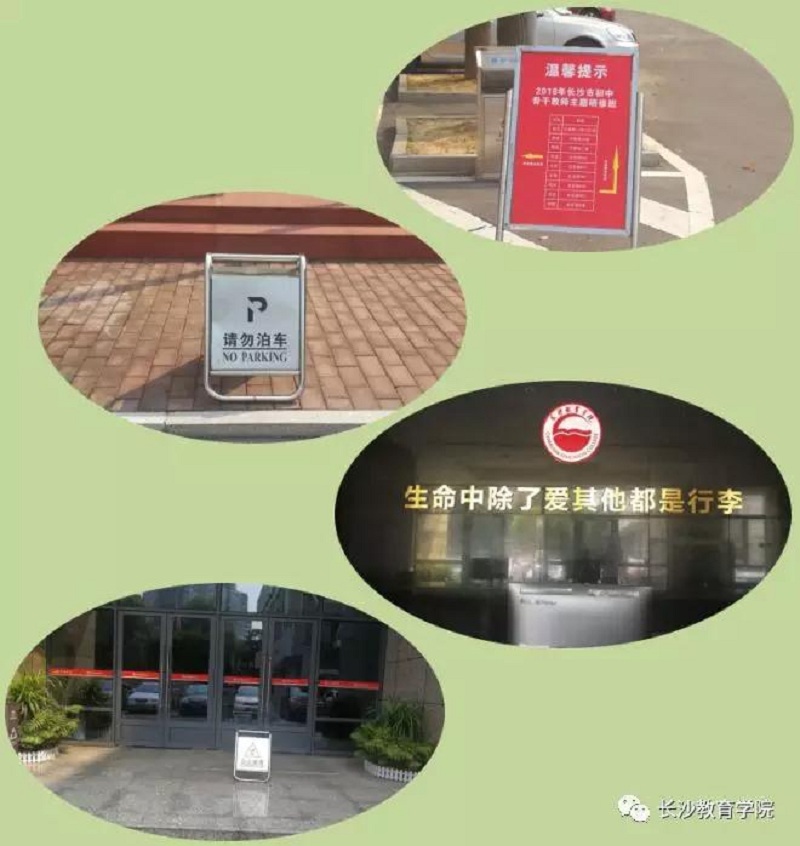 20日上午走至校园,我们看到了校园的美丽整洁,还欣赏到一道独特的风景。一句句温馨提示,真正诠释了“生命中除了爱其他都是行李”。岔道口的路牌指示,食堂、宿舍内地板提示“小心地滑”,人行道旁提示“请勿泊车”,报告厅旁备好的中药凉茶”……无不彰显学院的爱心!无不见证两型中的“环境友好”,无不体现人文关怀。