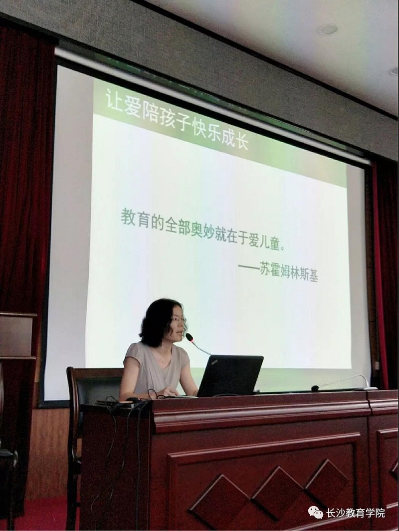 开班典礼结束后,学员们回到相容楼二楼半报告厅,认真聆听了来自雨花区砂子塘小学的优秀班主任王莲娥老师的精彩班级管理分享。王老师以《用爱陪伴孩子成长》为主题,结合自己多年的班主任工作经历,从"熟悉学生,把脉问诊","实施策略,对症下药","健康成长,收获幸福"三个方面为学员们送来了一份精神大餐。王老师工作中的细心,耐心,爱心深深地感染了在场的每一位学员。