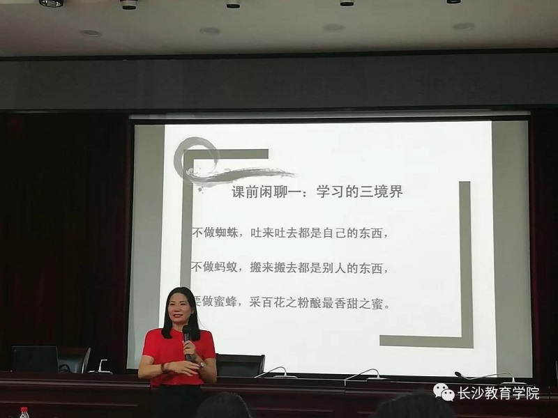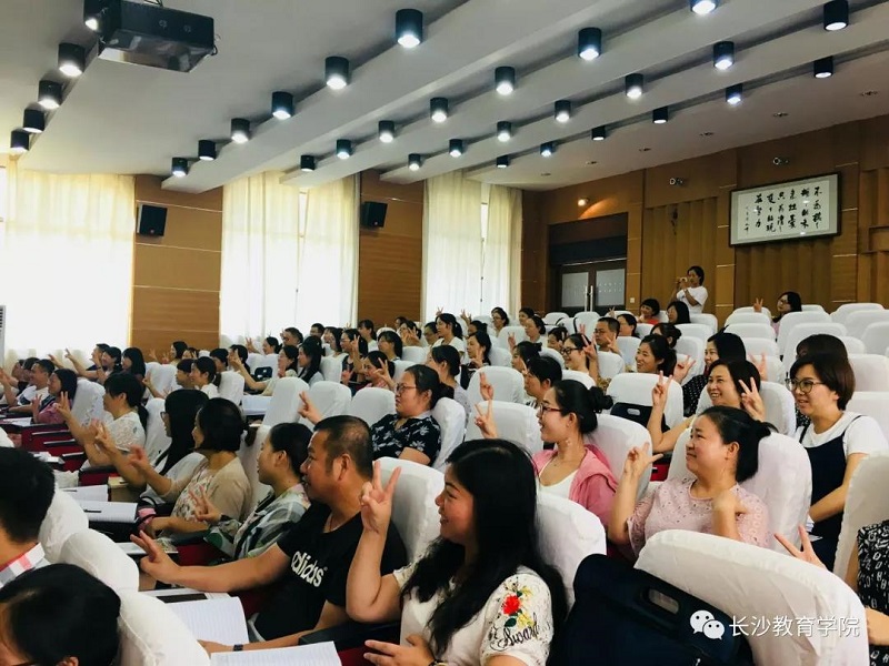 本网讯(通信员 李添笑)骄阳似火,长沙市暑期小学骨干班主任主题培训班的成员们学习热情不减。2018年7月27日,已是此次研修的第三天,因为相同的教育情怀,来自各区县的110位老师齐聚相容楼报告厅,共同享受夏日里的饕餮盛宴。培训现场干货满满,学员们秉承着“行胜于言”的理念,准时到场,认真倾听,将学习内容与自身教学相结合,进行深入思考与自我追问。