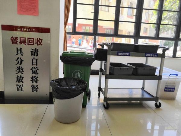 餐具回收分类放,餐厨垃圾及时清理。