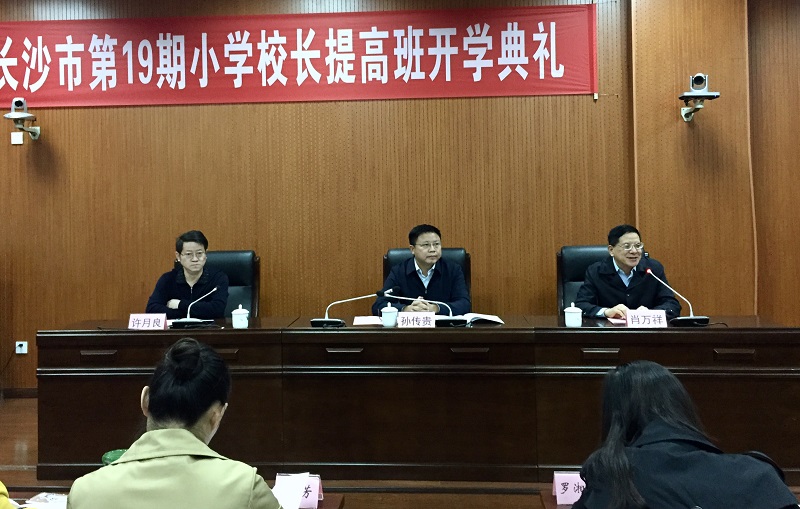 本期校长提高班的培训还得到了长沙市教育局的高度重视和关心。长沙市教育局党委副书记、副局长孙传贵参加了开学典礼,在听取肖万祥院长的致辞和学员代表长沙市天心区青园中信小学校长张文的表态发言后,着重从“不忘初心,增强办好学校的责任感”、“勤学善思,不断提高教育理念和管理水平”、“遵章守纪,严格树立教育干部的良好形象”等三个方面,对全体学员提出了殷切的希望。嘱托大家一定要带着使命学、带着问题学、带着责任学、带着感情学。除了要认真学习智慧校园建设的理论和技术外,还要学懂悟透大数据科技时代赋予校长的特殊使命,努力把每一所学校办好。他强调:“教育人要不忘初心,保持对教育的执着与热爱;要牢记使命,担当起为国家培养人才的时代重任。努力把每一所学校办成优质学校,让‘不准择校’变为‘不需择校’,一任接着一任干,一棒接着一棒跑。”副局长孙传贵的讲话意味深长,生动的语言让学员们备受鼓舞,如同给学员们的心中种下了一颗种子,一个梦想。