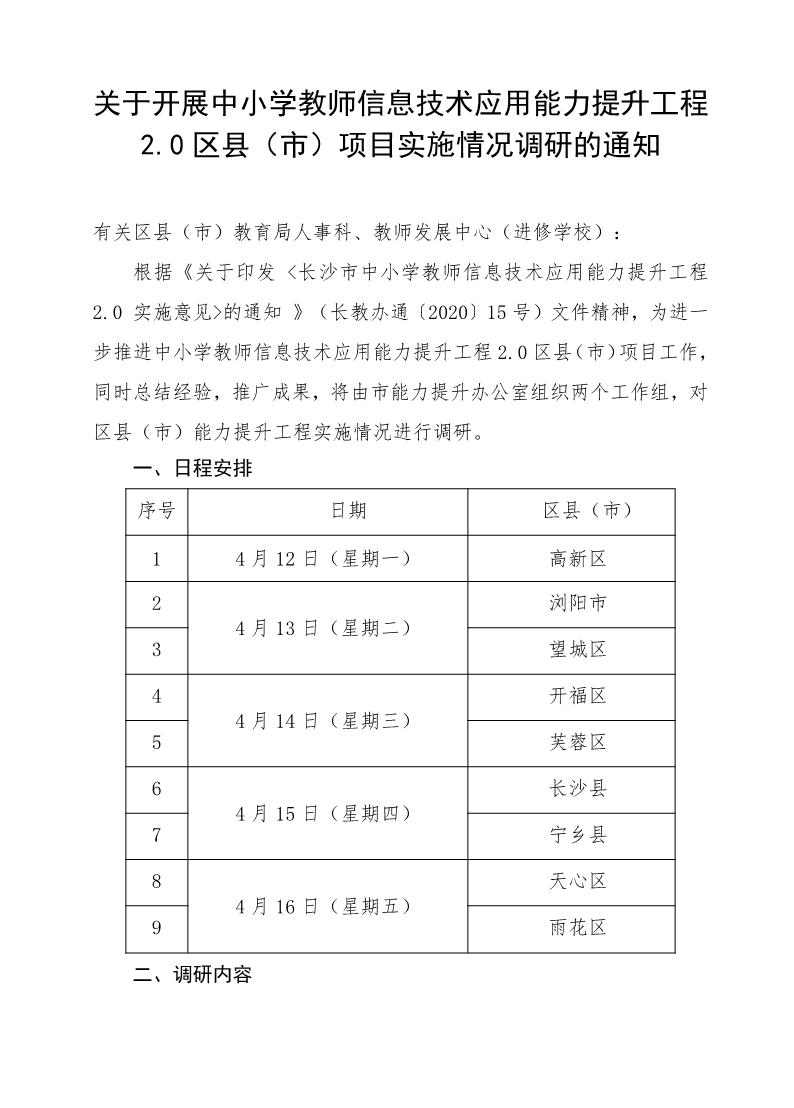 关于开展中小学教师信息技术应用能力提升工程2.0区县(市)项目实施情况调研的通知 来源: 发布时间:2021-04-07 16:00:00 浏览次数: 次 【字体:小 大】 终审:师训处 分享到: 【打印正文】