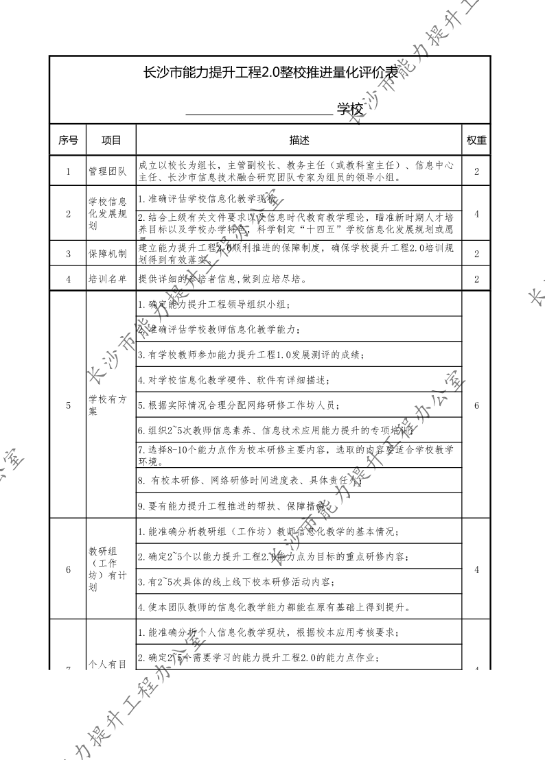 长沙市能力提升工程2.0整校推进量化评价细则