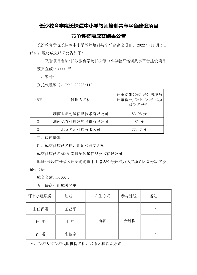 9323彩票集团长株潭中小学教师培训共享平台建设项目竞争性磋商成交结果公告 来源: 发布时间:2022-11-07 10:00:04 浏览次数: 次 【字体:小 大】 终审:党建 分享到: 【打印正文】