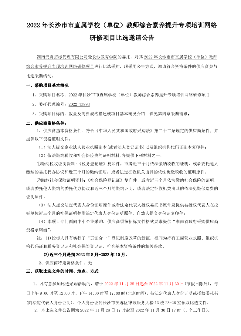 2022年长沙市市直属学校(单位)教师综合素养提升专项培训网络研修项目比选邀请公告 来源: 发布时间:2022-11-28 11:17:07 浏览次数: 次 【字体:小 大】 终审:党建 分享到: 【打印正文】