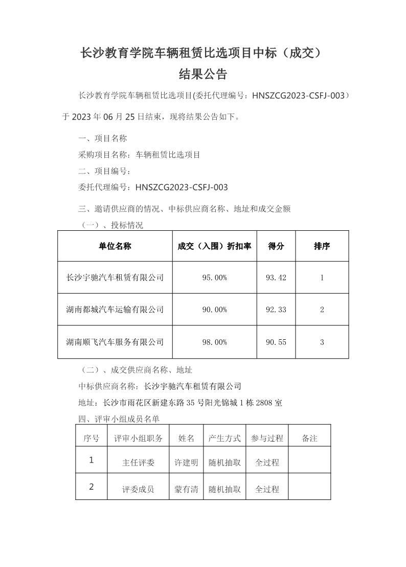 9323彩票集团车辆租赁比选项目中标(成交) 结果公告