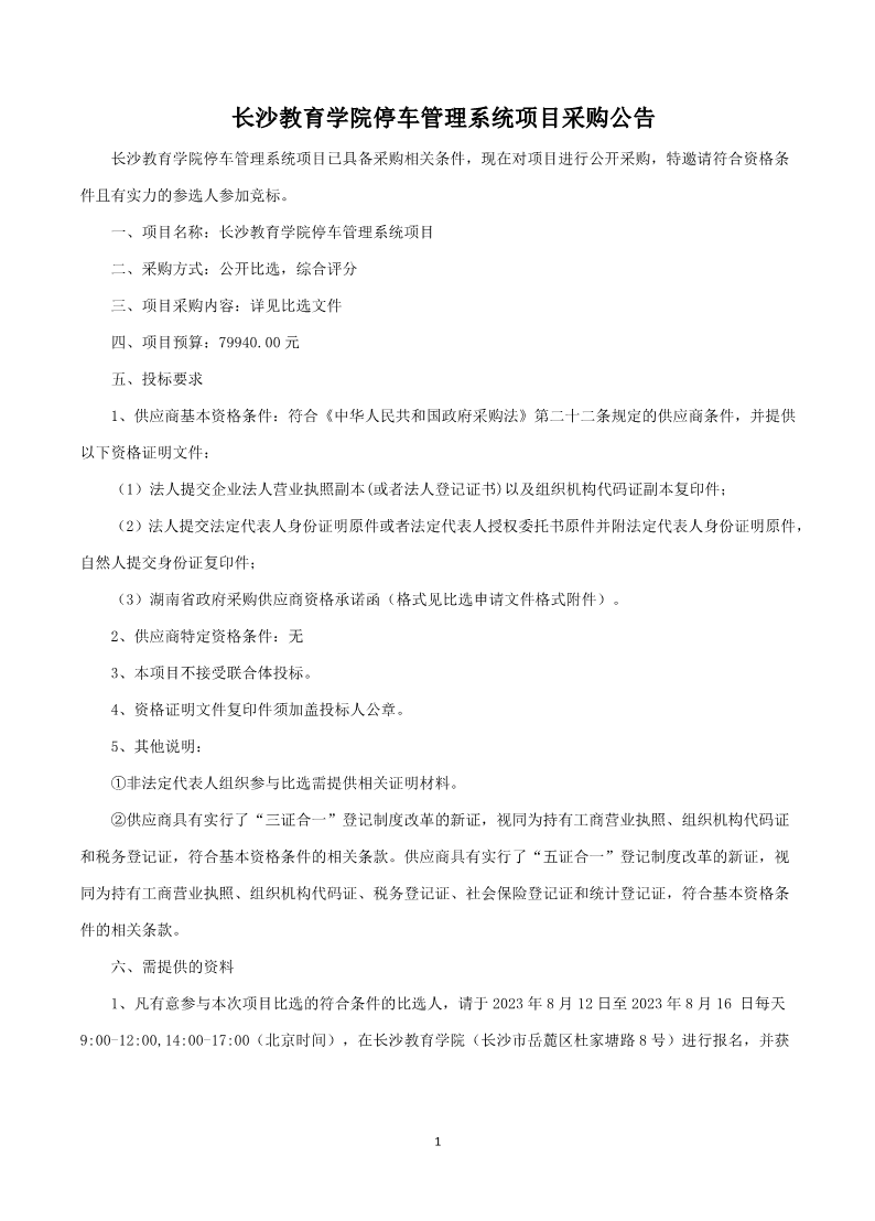 停车管理系统比选公告