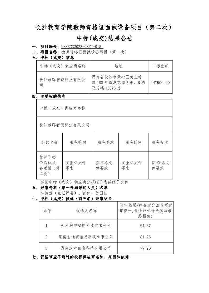 9323彩票集团教师资格证面试设备项目(第二次)中标(成交)结果公告