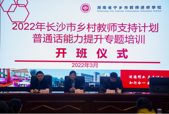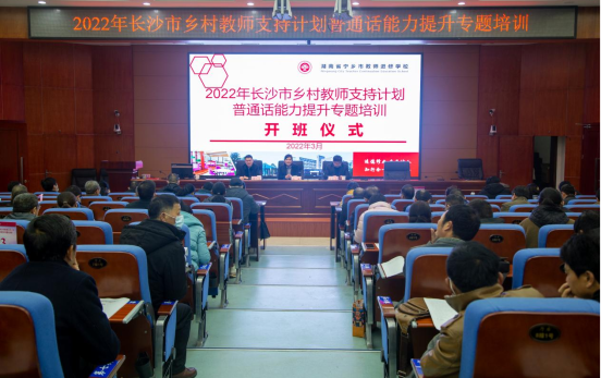 2022年3月5日至3月6日,2022年长沙市乡村教师支持计划普通话能力提升专题培训在宁乡市教师进修学校报告厅顺利举行。宁乡市教师进修学校书记、校长彭惠才,学校副校长周汉学,长沙市普通话培训测试站主任向敏出席了开班仪式,宁乡市中小学及幼儿园的205个老师参加了此次培训。