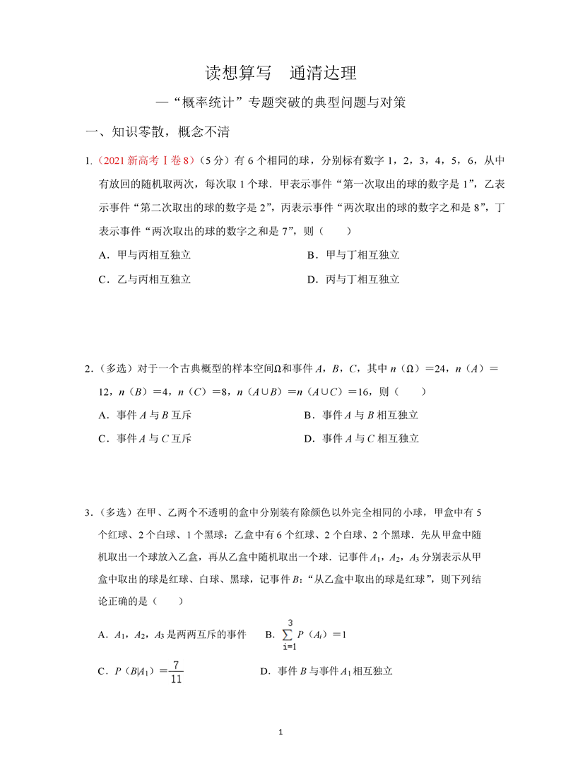 《“概率统计”专题突破的典型问题与对策》前置学习单